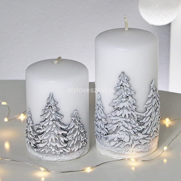 Świeca Ozdobna Pieńkowa Zimowe Drzewka WYBIERZ KOLOR! 10cm