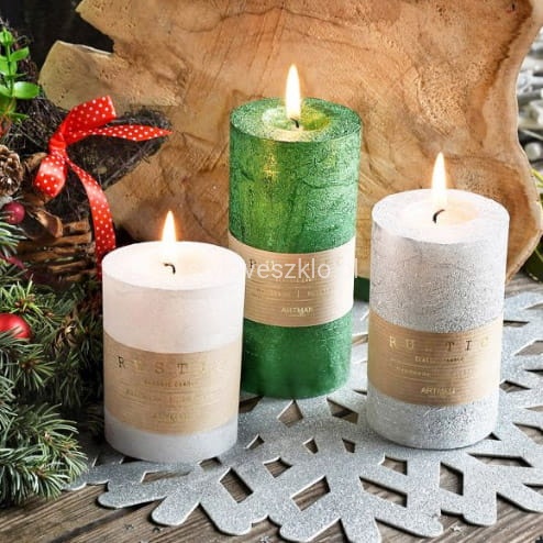 Świeca pieńkowa ozdobna Rustic Metalik jest świecą, której powierzchnia jest chropowata oraz wykończona w różnych odcieniach metaliku. Dzięki temu idealnie pasuje do surowych, minimalistycznych kompozycji. Świece rustic tworzą atmosferę wnętrza lokalu. Jest to typowa świeca o przeznaczeniu świątecznym, sylwestrowym lub karnawałowym. Idealna na wystawne przyjęcia w hotelu, restauracji, czy kawiarni.