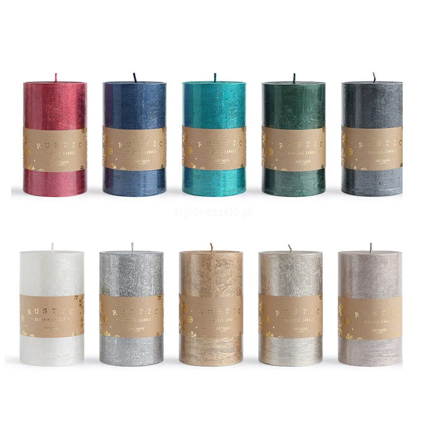 Świeca pieńkowa ozdobna Rustic Metalik jest świecą, której powierzchnia jest chropowata oraz wykończona w różnych odcieniach metaliku. Dzięki temu idealnie pasuje do surowych, minimalistycznych kompozycji. Świece rustic tworzą atmosferę wnętrza lokalu. Jest to typowa świeca o przeznaczeniu świątecznym, sylwestrowym lub karnawałowym. Idealna na wystawne przyjęcia w hotelu, restauracji, czy kawiarni.