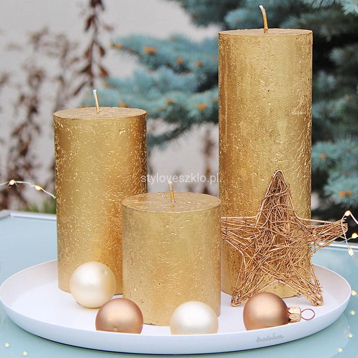 Świeca Pieńkowa Rustic BOLSIUS Shimmer Złota 19cm
