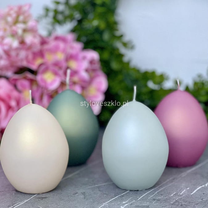 Świeca figurka jajko znakomicie wpasowuje się w każdy styl. Na podstawce i w towarzystwie szklanych dodatków lub girland będzie tworzyć wyjątkową dekorację, pełną blasku. Świeca może stanowić trzon stroika okolicznościowego lub tworzyć przestrzenną dekorację z kilkoma świecami tego samego gatunku.