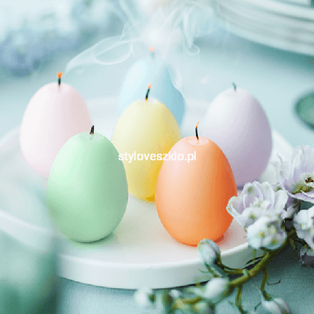 Świece wielkanocne jajka są idealne do dużych szklanych świeczników. Wówczas na dno wsypujemy ozdobny żwirek lub kamienie, dokładamy ozdobne trawy, piórka lub inne dekoracje. Gwarantujemy, że po ich zapaleniu stworzy się wspaniała atmosfera, a dekoracja zamieni się w ruchomy świetlny spektakl.