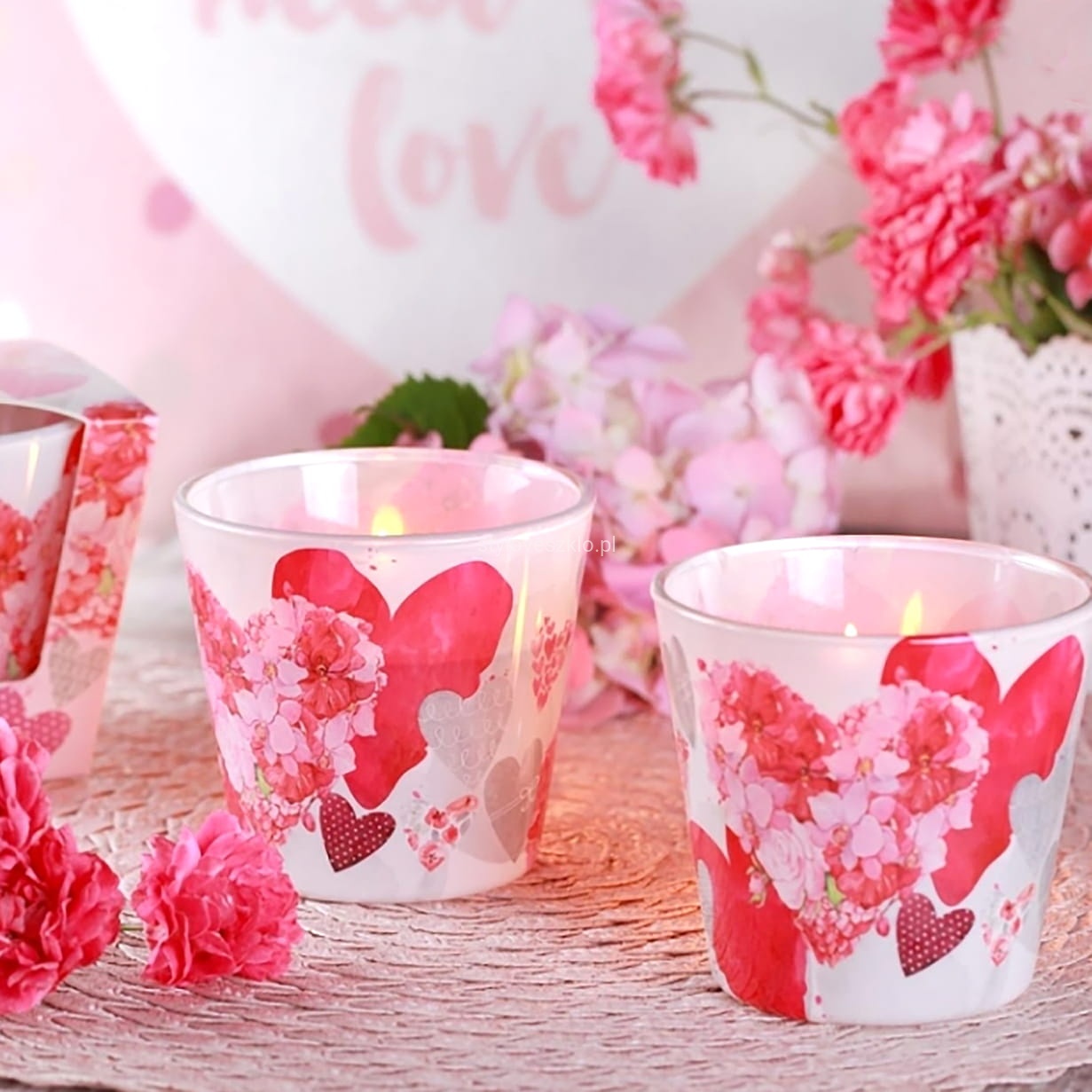 Świeca zapachowa Flowers Hearts Secret Garden to schowana w szklanym niewielkim świeczniku dekoracja, przypominająca swoim wyglądem świeczkę typu tealight. Po jej zapaleniu w pomieszczeniu rozprzestrzenia się przytulny zapach ogrodu pełnego kwiatów. Świeca zapachowa daje punktowe światło i pięknie prezentuje się w każdej aranżacji restauracyjnej, hotelowej, czy kawiarnianej. Jednak oprócz ciepłego światła daje również aromat, przyjemnie kojący zmysły.