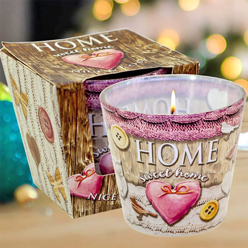 Świeca zapachowa Home Sweet Home Nice & Cosy to schowana w szklanym niewielkim świeczniku dekoracja, przypominająca swoim wyglądem świeczkę typu tealight. Po jej zapaleniu w pomieszczeniu rozprzestrzenia się przytulny zapach. Świeca zapachowa daje punktowe światło i pięknie prezentuje się w każdej aranżacji restauracyjnej, hotelowej, czy kawiarnianej. Jednak oprócz ciepłego światła daje również aromat, przyjemnie kojący zmysły.