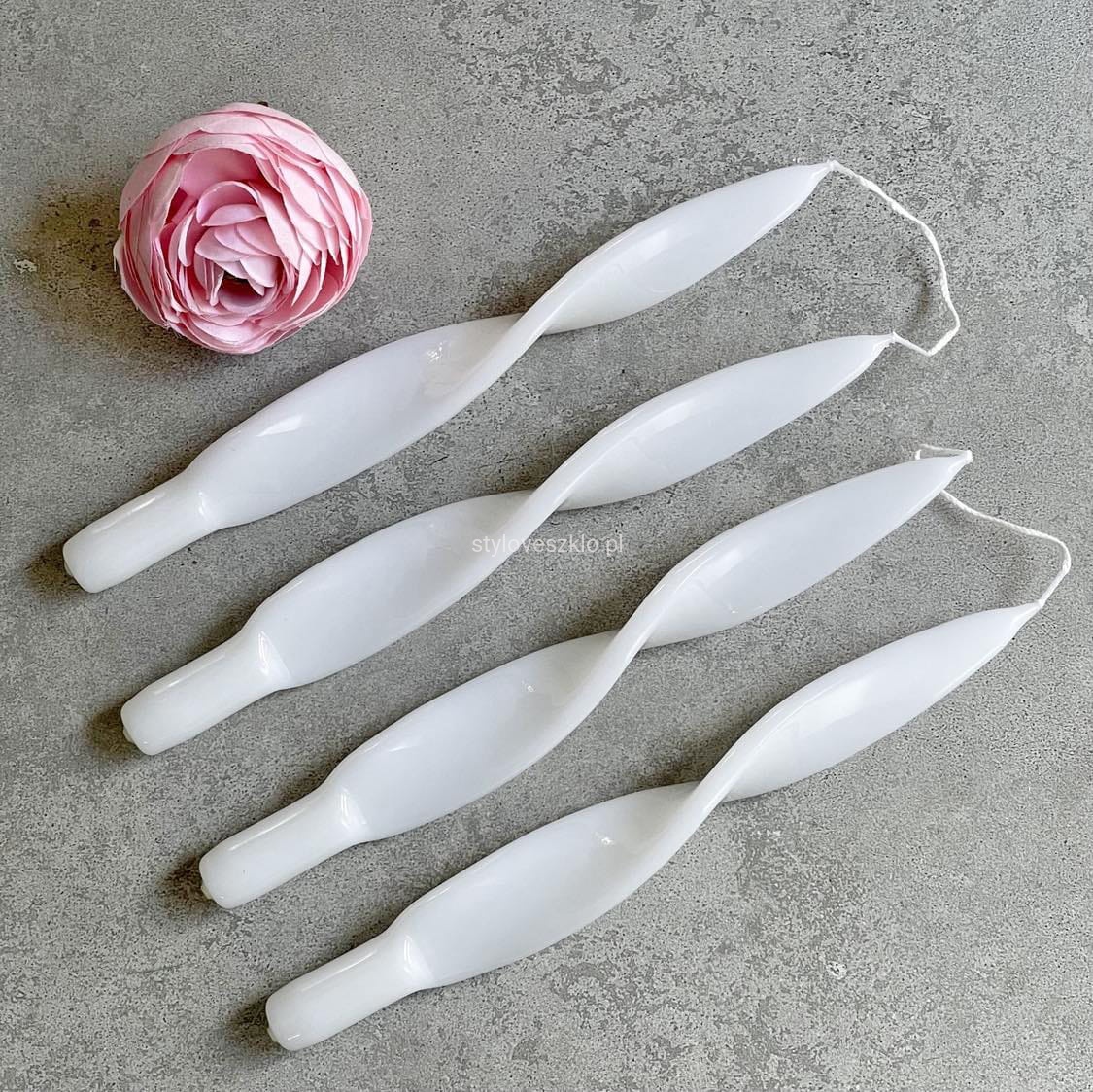 Świece Lakierowane Velvet Kręcone 27cm 4 szt. Białe