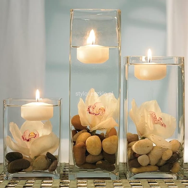Świeczki pływające dyski ecru mat są idealne w plenerze, unosząc się na stawie lub oczku wodnym, jak w sali bankietowej. Wówczas na dno wsypujemy ozdobny żwirek lub kamienie, dokładamy ozdobne trawy, muszle lub inne dekoracje, które pozostaną pod wodą, a na wierzch kładziemy kilka pływających świeczek. Gwarantujemy, że po ich zapaleniu stworzy się wspaniała atmosfera, a dekoracja zamieni się w ruchomy świetlny spektakl.