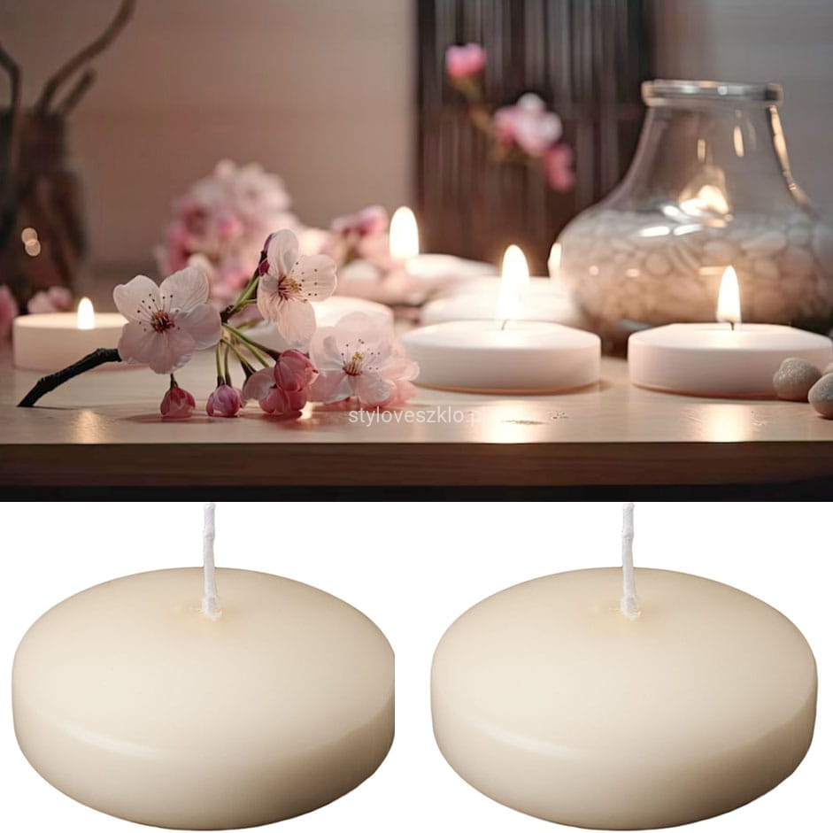 Świece Ozdobne Pływające Dyski Płaskie XXL 6 szt. Kremowe Φ 8cm