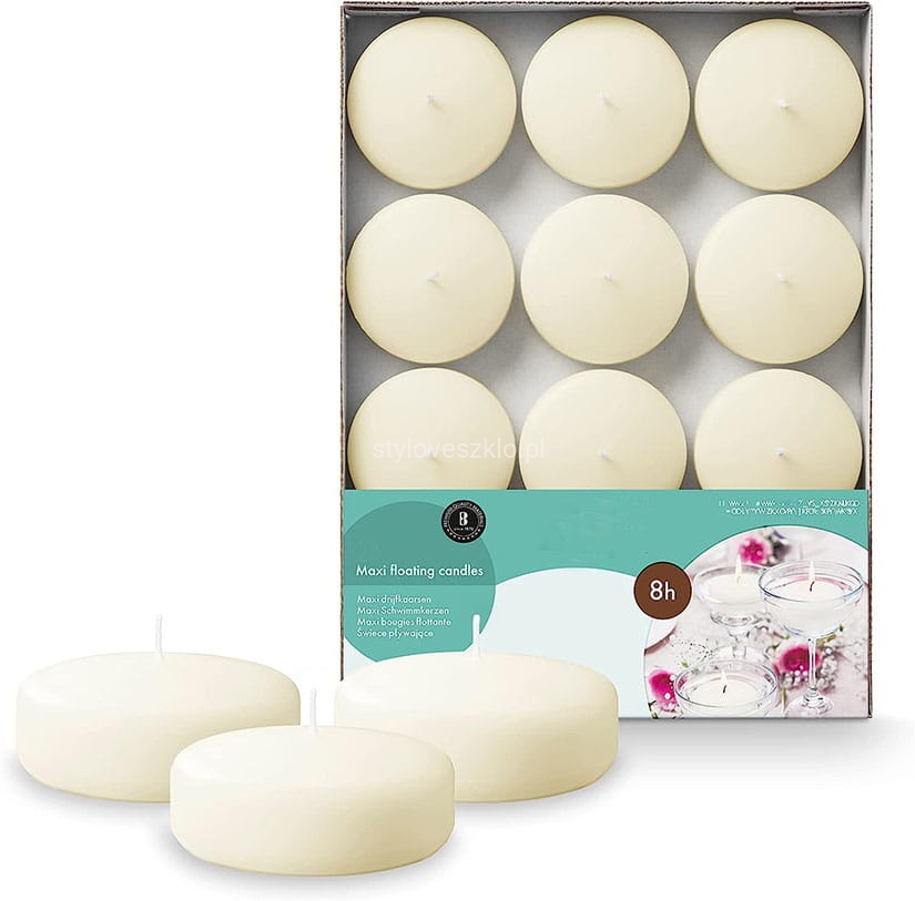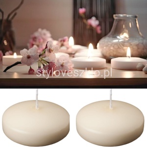 Świeczki pływające dyski XXL płaskie to świece kształtem przypominające dysk. Dzięki swojej formie znakomicie utrzymują się na wodzie. Zostały wykończone matową powłoką, co ułatwia dopasowanie danego rodzaju świeczki do aranżacji.