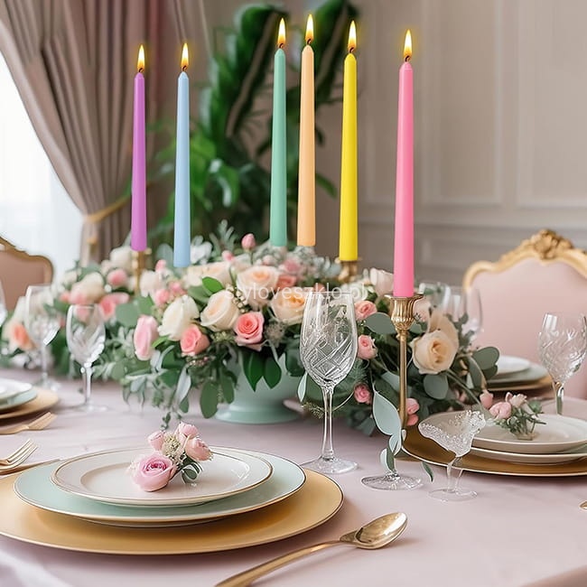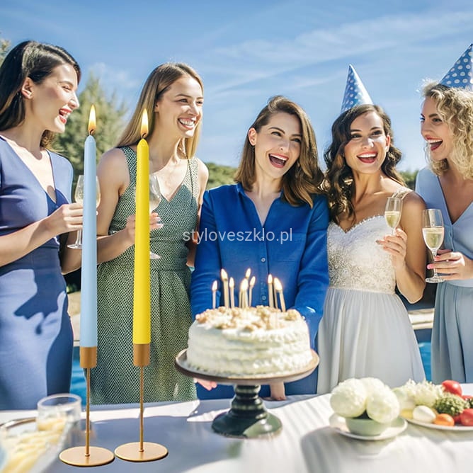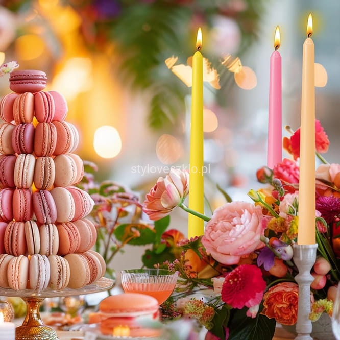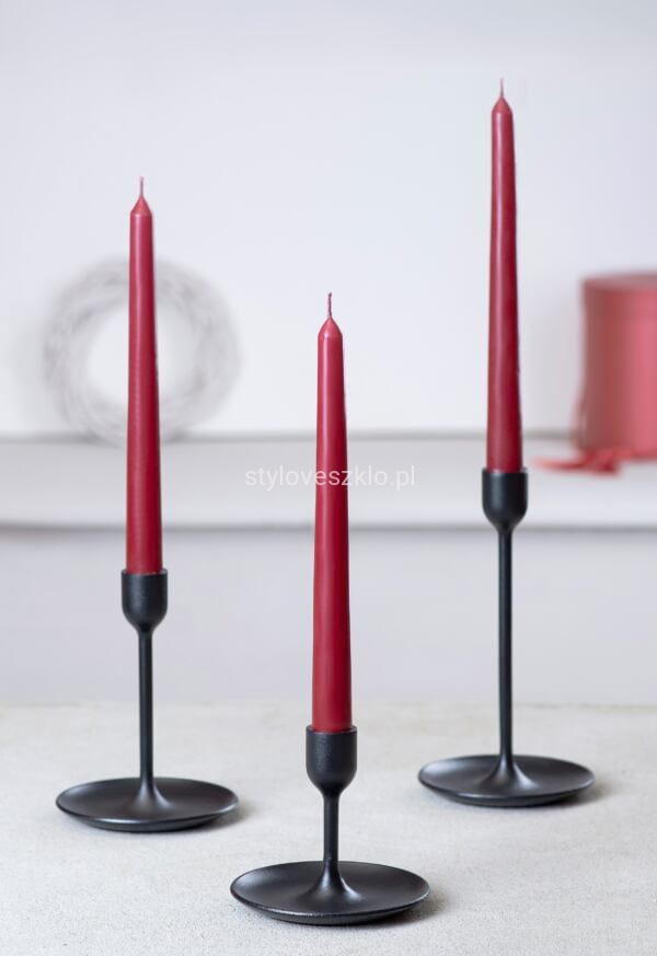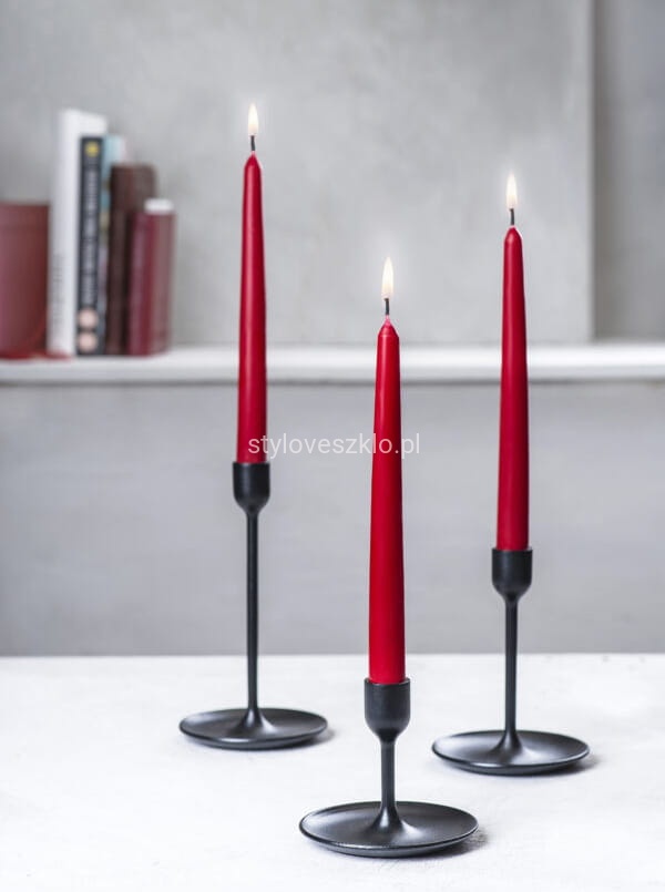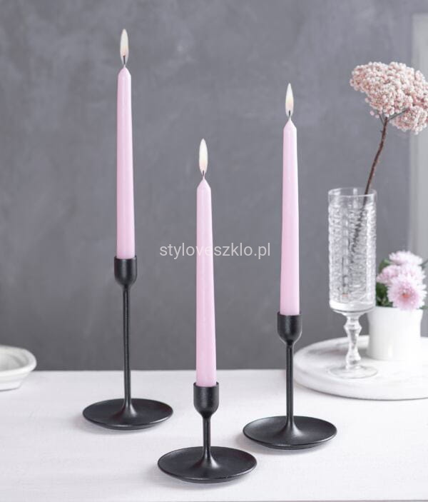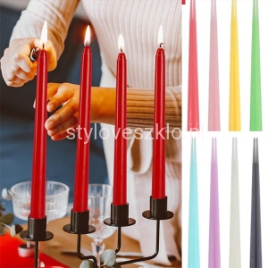 Świeca ozdobna stożkowa może stanowić trzon stroika lub dekoracji, którą stawiamy na stołach podczas organizowanych w naszym hotelu, restauracji, czy kawiarni uroczystości. Pięknie prezentuje się zarówno w wysokich świecznikach na nóżce, kandelabrach, jak i niewielkich świecznikach kryształowych.