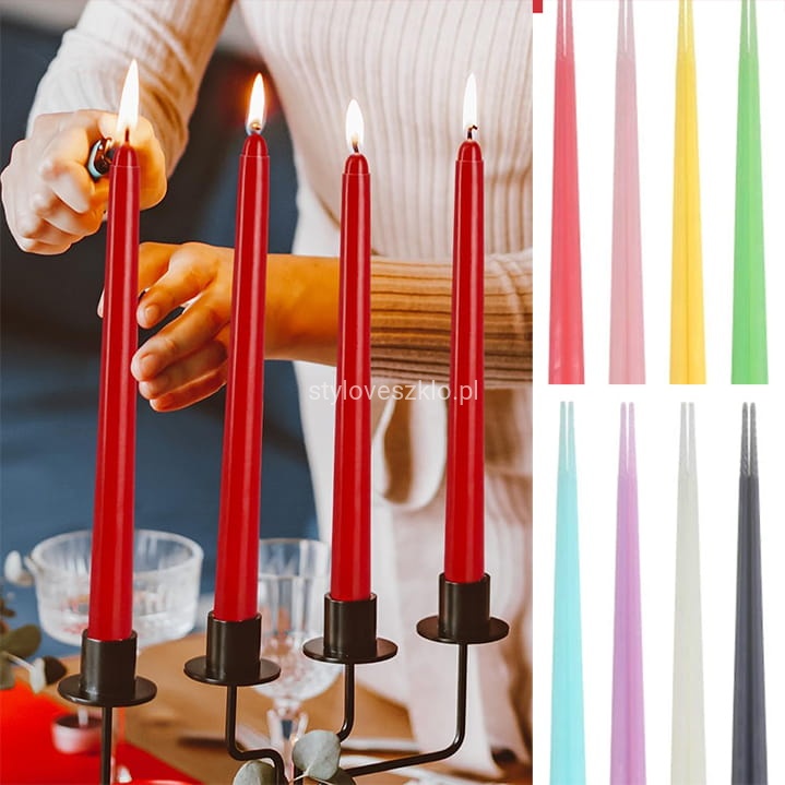 Świece Ozdobne Stożkowe Lakierowane Extra Długie 40cm 8szt. WYBIERZ KOLOR!