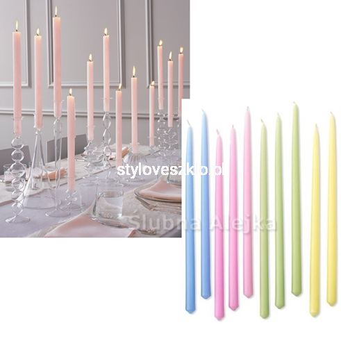 Świece Ozdobne Stożkowe Matowe 24 cm 10 szt. WYBIERZ KOLOR!
