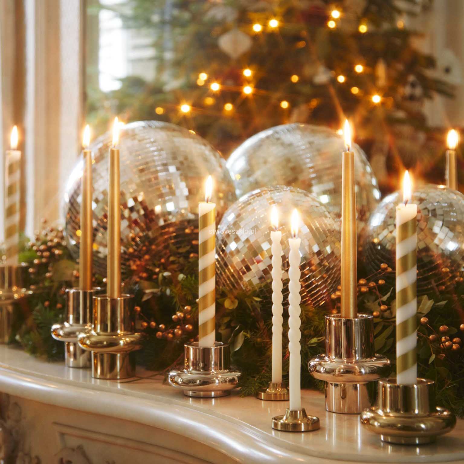 Świece Ozdobne Stroikowe Cienkie 23cm 8 szt. Złoty Metalik