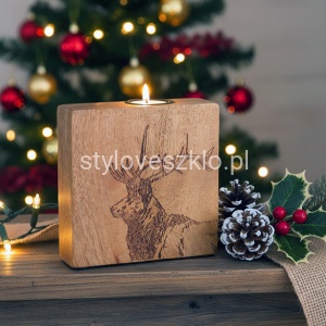 Świecznik Drewno Mango Renifer Grawerowany 13x 13 cm