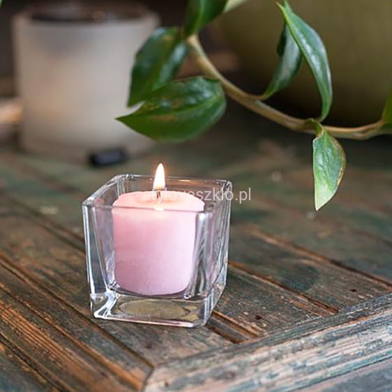 Świecznik szklany kostkę można wykorzystać na dwa sposoby. Z jednej strony możemy użyć go bez dodatkowych ozdób i porozstawiać w wybranych miejscach, tworząc punkty świetlne. Z drugiej strony możemy wpleść świecznik szklany kostkę w większą kompozycję. Z uwagi na to, że świecznik jest przezroczysty - wśród np. florystycznych dodatków będzie widoczny jedynie niewielki płomień.