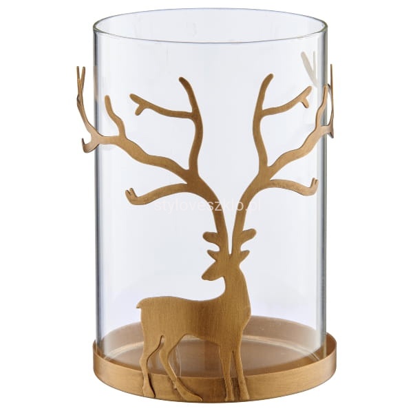Świecznik Szklany Lampion Złoty Renifer 14 cm