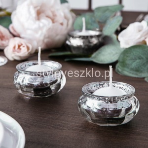 Świecznik Szklany Lustrzany Srebrny 3cm 4szt.