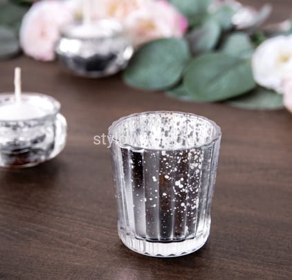 Świecznik Szklany Lustrzany Srebrny 6cm 4szt.