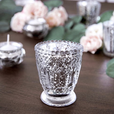 Świecznik Szklany Lustrzany Srebrny 8cm 4szt.