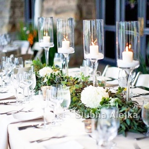 Zwykle świecznik szklany na nodze rozmieszczany jest symetrycznie na całej długości stołów. Wewnątrz świecznika, tuż obok świecy, można umieścić dodatkowe roślinne dekoracje. W naszej ofercie świeczniki mają różną wysokość, więc z powodzeniem możemy tworzyć z nich całe zestawy. Świecznik szklany na nodze można również aranżować, dopasowując go do pory roku, zbliżających się świąt lub wyjątkowych okazji.