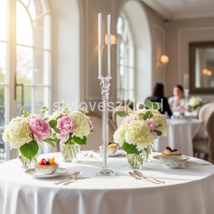 Świecznik Szklany na Nodze Cristal Novum Srebrny 90cm