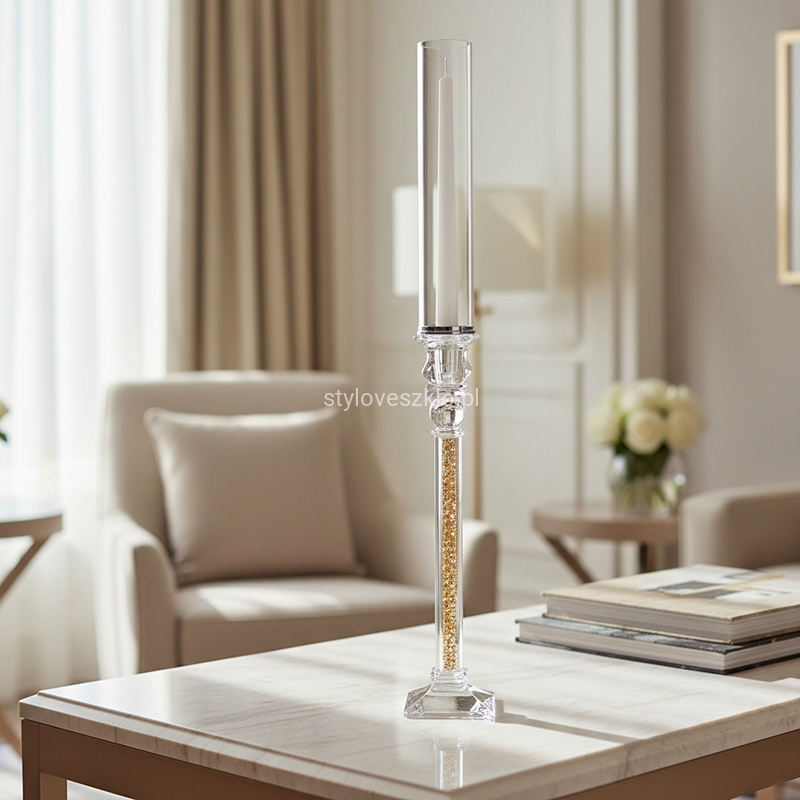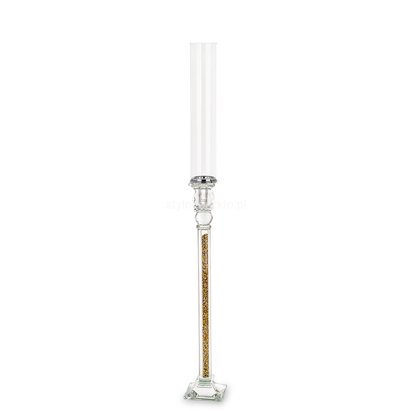Świecznik Szklany na Nodze Cristal Novum Złoty 80cm