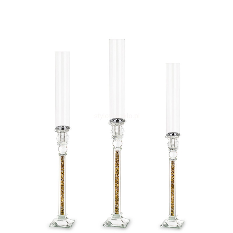 Wytworny Świecznik Szklany Novum - kryształowe szkło ze złotym wypełnieniem