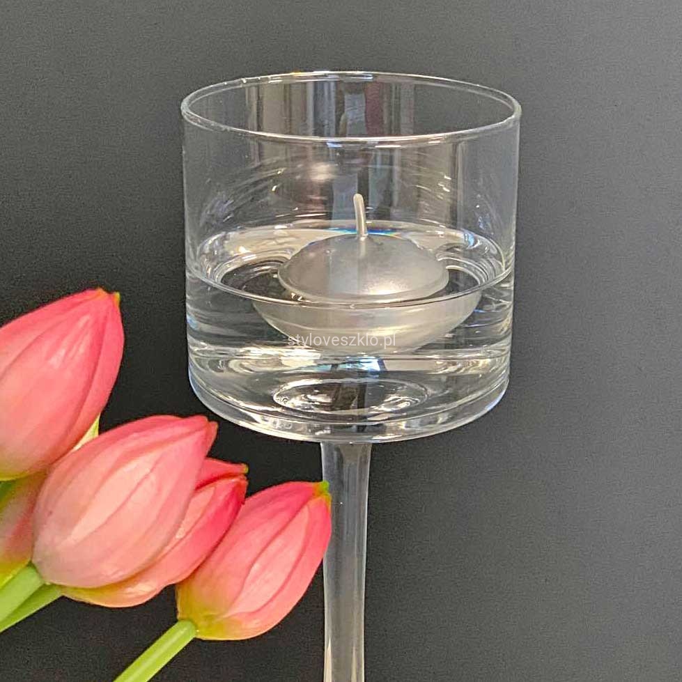 Świecznik szklany na nodze to elegancki i bardzo praktyczny w zastosowaniu element dekoracyjny. Cylindryczna czasza świecznika została osadzona na długiej, smukłej nóżce. Restauratorzy wykorzystują świecznik szklany na nodze jako lampiony wzdłuż całego stołu. Można zakupić je w hurtowych ilościach i ozdobić nimi całą restaurację, kawiarnię lub hotelowe lobby. Świecznik szklany na nodze wykonany jest z gładkiego lub mrożonego szkła.
