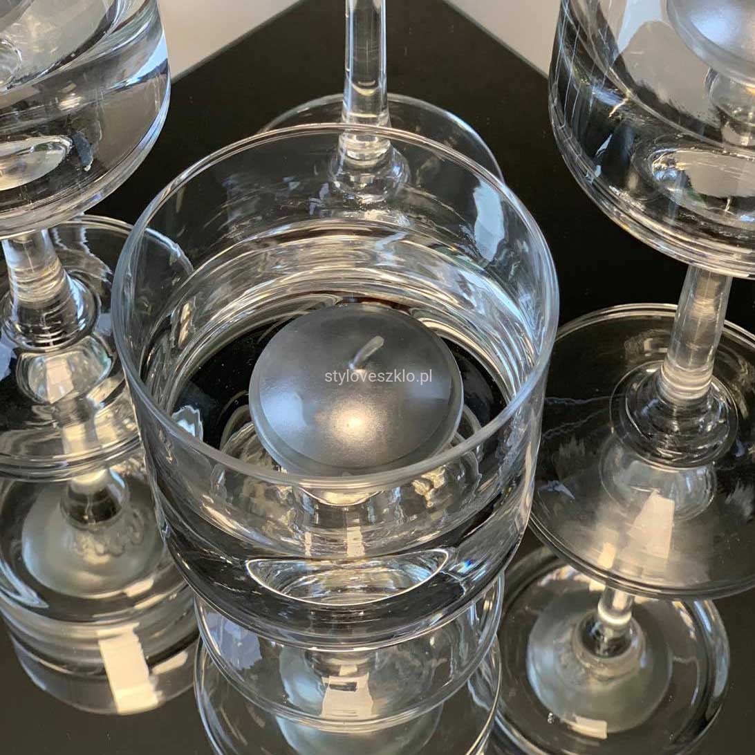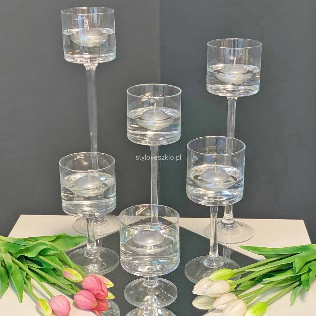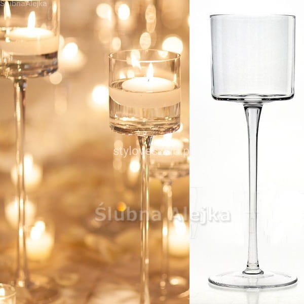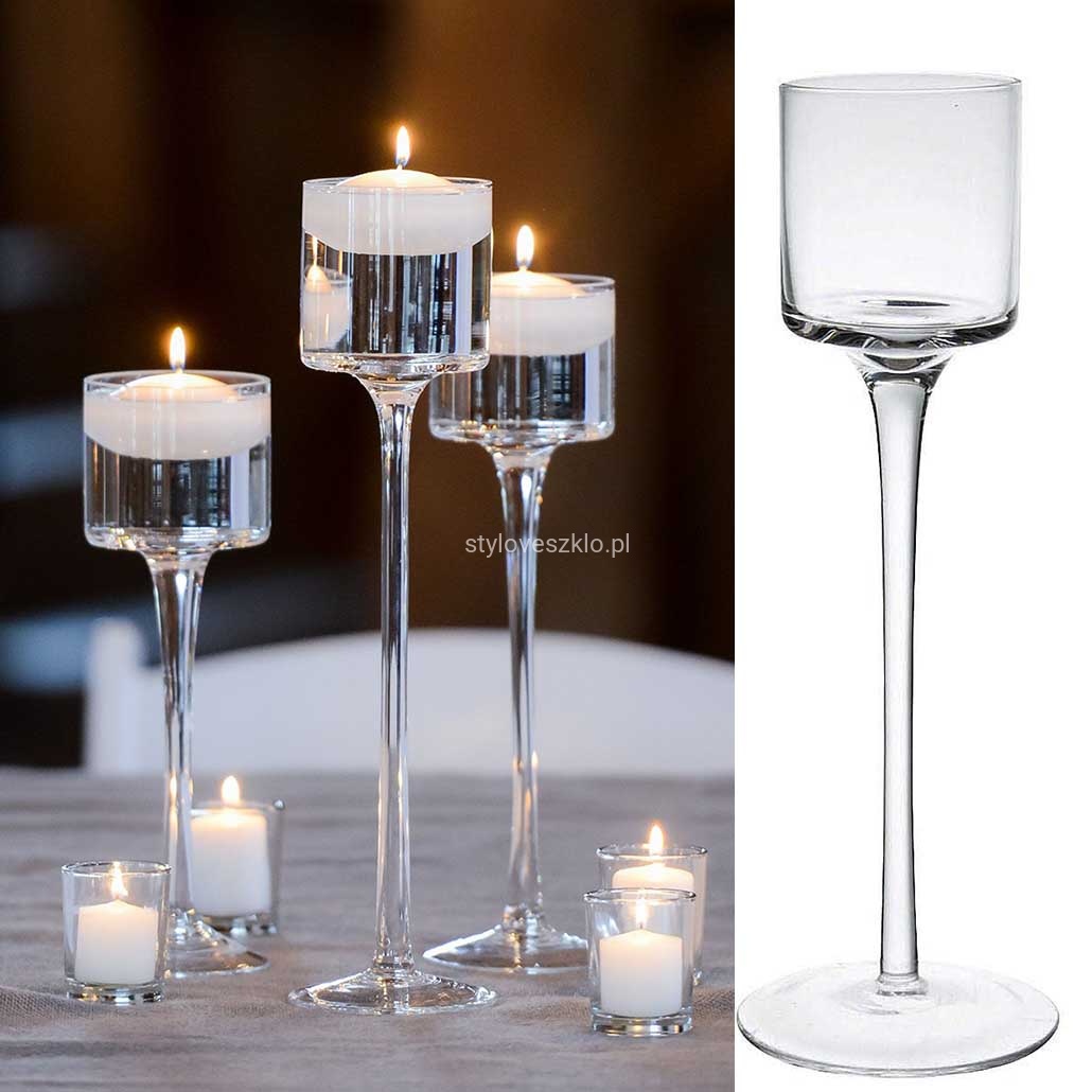 Świecznik szklany na nodze to elegancki i bardzo praktyczny w zastosowaniu element dekoracyjny. Cylindryczna czasza świecznika została osadzona na długiej, smukłej nóżce. Restauratorzy wykorzystują świecznik szklany na nodze jako lampiony wzdłuż całego stołu. Można zakupić je w hurtowych ilościach i ozdobić nimi całą restaurację, kawiarnię lub hotelowe lobby. Świecznik szklany na nodze wykonany jest z gładkiego lub mrożonego szkła.