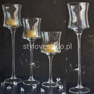 Zwykle świecznik szklany na nodze rozmieszczany jest symetrycznie na całej długości stołów. Wewnątrz świecznika, tuż obok świecy, można umieścić dodatkowe roślinne dekoracje. W naszej ofercie świeczniki szklane mają różną wysokość, więc z powodzeniem możemy tworzyć z nich całe zestawy. Świecznik szklany na nodze ROYAL można również aranżować, dopasowując go do pory roku, zbliżających się świąt lub wyjątkowych okazji.