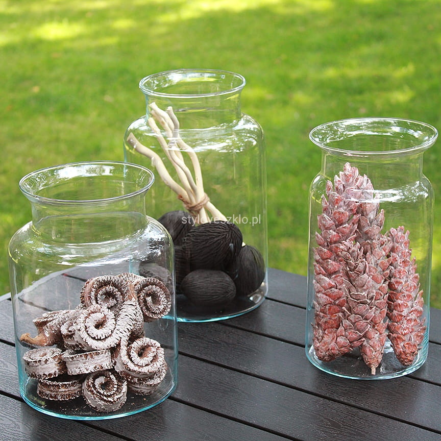 Słój szklany można wypełnić gałązkami, lampkami LED, ozdobnymi świecami lub elementami dekoracji w stylu greenbells, kamieniami ozdobnymi oraz akcesoriami związanymi z danym sezonem: porą roku lub świętami. Duża średnica szyjki słoja pozwala umieścić w nim przedmioty w różnych rozmiarach, a zatem dekoracja jest uniwersalnym i kreatywnym dodatkiem każdej aranżacji wnętrza.