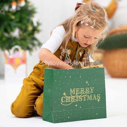 Torebka na Prezenty Merry Christmas Butelkowa Zieleń