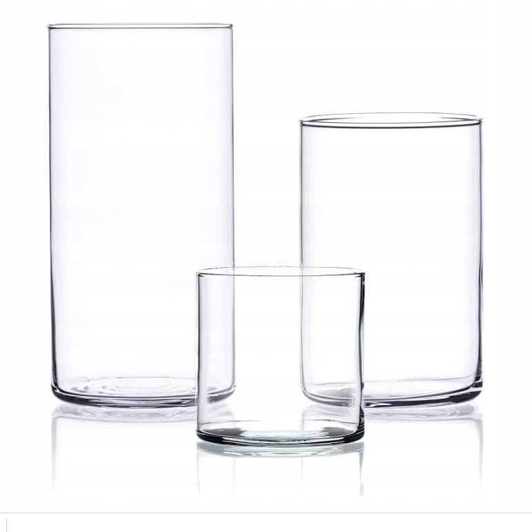Wazon Szklany Cylinder Mocne Szkło 15,20,30 cm Zestaw 3szt.