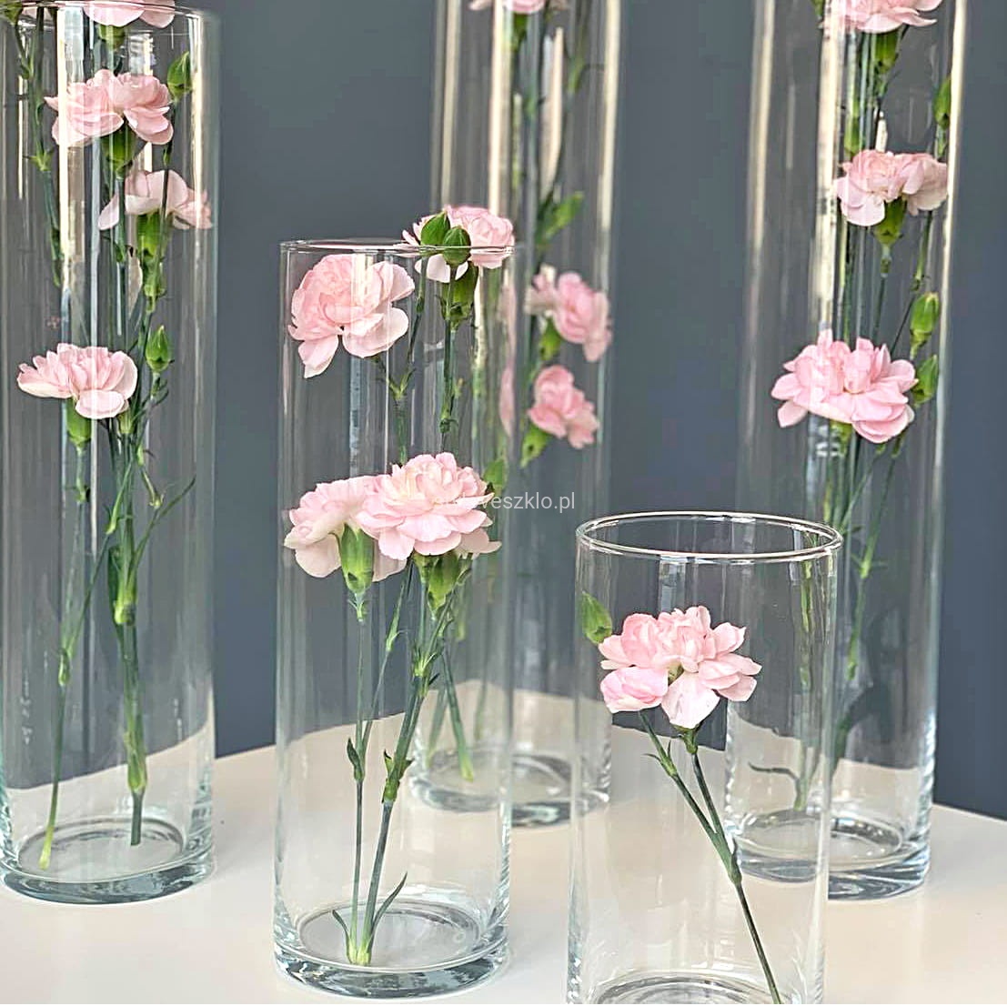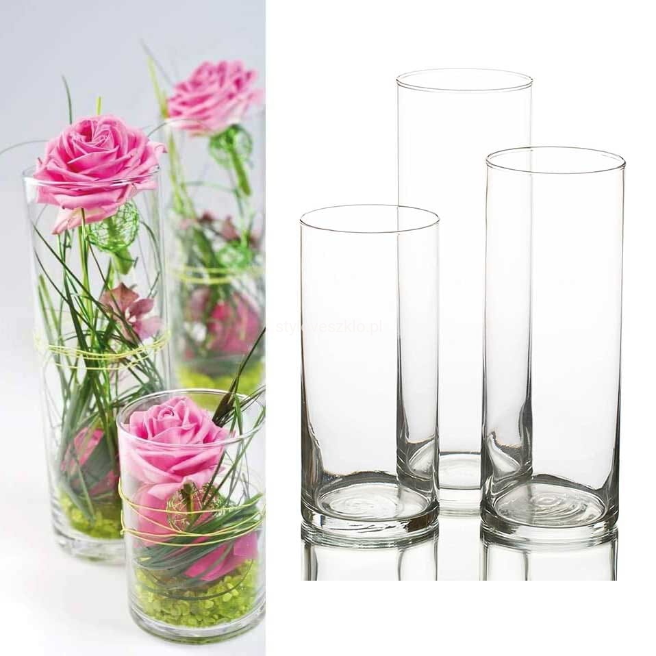 Wazon szklany cylinder jest wdzięcznym dodatkiem do dekoracji wnętrz w branży HoReCa. Długie kwiaty: róże, lilie, czy goździki, pięknie prezentują się w przezroczystym naczyniu nawet pojedynczo. Wnętrze wazonu można wypełnić również kolorowym piaskiem lub żwirem ozdobnym, tworząc warstwową dekorację stołów i komód.