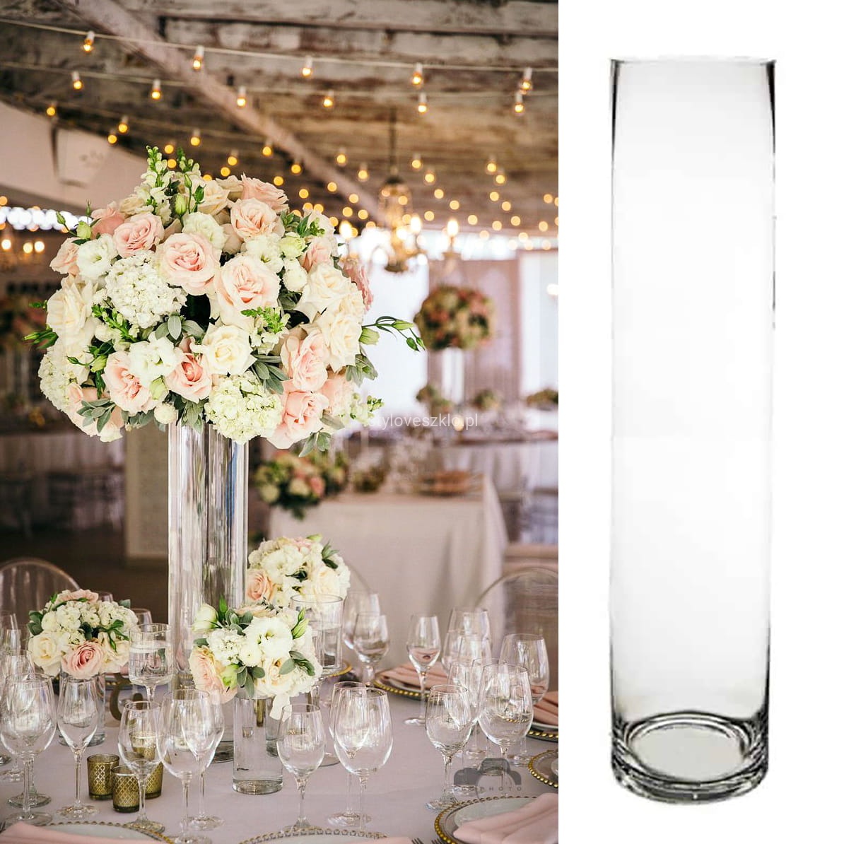 Wazon Szklany Cylinder Wąski Mocne Szkło 60cm ϕ 10cm