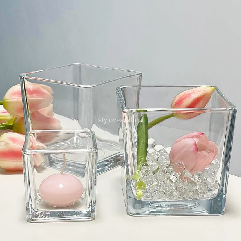 Wazon szklany kwadrat to dodatek niezbędny na każdej sali bankietowej, w każdej kawiarni i hotelu. Nasze wazony szklane sprawdzą się w nowoczesnych wnętrzach, nawet tych industrialnych. Szkło, z jakiego zostały wykonane jest wysokiej jakości i całkowicie bezbarwne. Kształt kostki swoim charakterem nawiązuje do aranżacji modernistycznych. Wypełnienie tego rodzaju wazonu szklanego również będzie nieco bardziej ascetyczne niż w przypadku wazonów tradycyjnych.