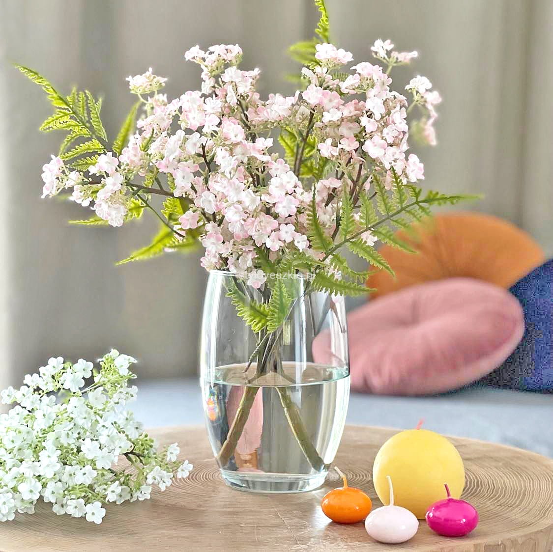 Wazon szklany do bukietów można wykorzystać do dekoracji każdego wnętrza. Można umieścić w nim różne rodzaje kwiatów, od róż, tulipanów, przez goździki, po gerbery i wiele innych. Mogą to być też sztuczne kwiaty. Ważne jest jedynie, by rośliny miały długie łodygi. W wazonie zmieści się duża ilość kwiatów, więc nie wymaga dodatkowych ozdób. W zupełności wystarczy na przykład wstążka. Można także ewentualnie ustawić wazon na podstawce i położyć dodatki florystyczne. Jednak na stoły, na których ma zmieścić się jedzenie i napoje, duże dekoracje nie są wskazane. Kwiaty w wazonie z dodatkami wokół sprawdzą się najlepiej jako dekoracja całego pomieszczenia, umieszczona w miejscu, gdzie będzie zwracała uwagę. Do wazonu można też wsypać kolorowy piasek dekoracyjny. Warstwy piasku w różnych kolorach pozwalają stworzyć naprawdę oryginalną dekorację. Wszystko oczywiście zależy od wyobraźni dekoratora, stylu aranżacji sali oraz okazji, na jaką się salę przygotowuje.