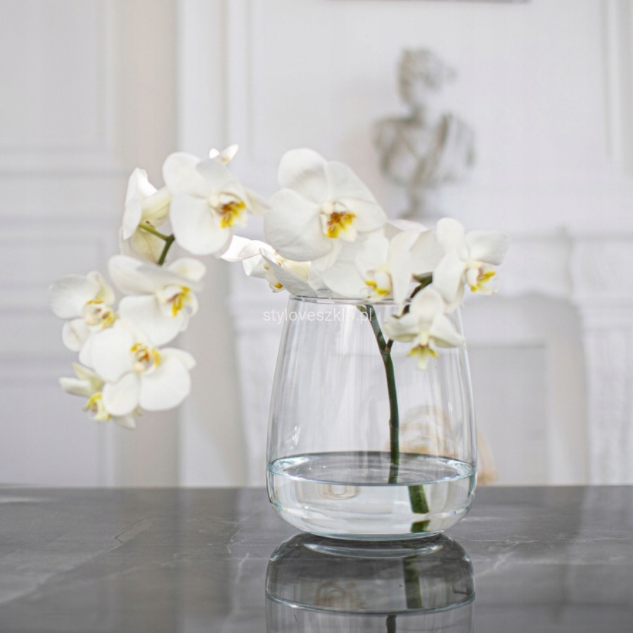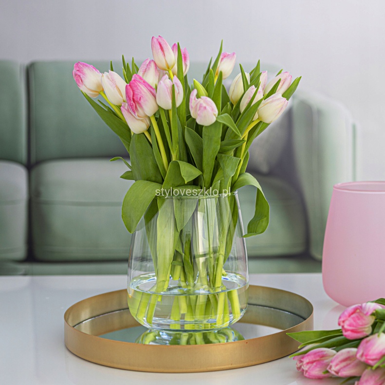 Wazon szklany do bukietów Wiosenny, z uwagi na swoje przeznaczenie, przyjął kształt tradycyjnego wazonu węższego w swej podstawie i węższego w górnej części. Szkło zakończonee zatopką zostało precyzyjnie wyprofilowane, aby wazon szklany do bukietów zachowywał wszelkie wymagane proporcje. Klasyczny wygląd odpowiada dekoratorom zarówno nowoczesnych, jak i tradycyjnych wnętrz hoteli, kawiarni, czy restauracji. I to dzięki niemu wazon trafia również w gusta gości.