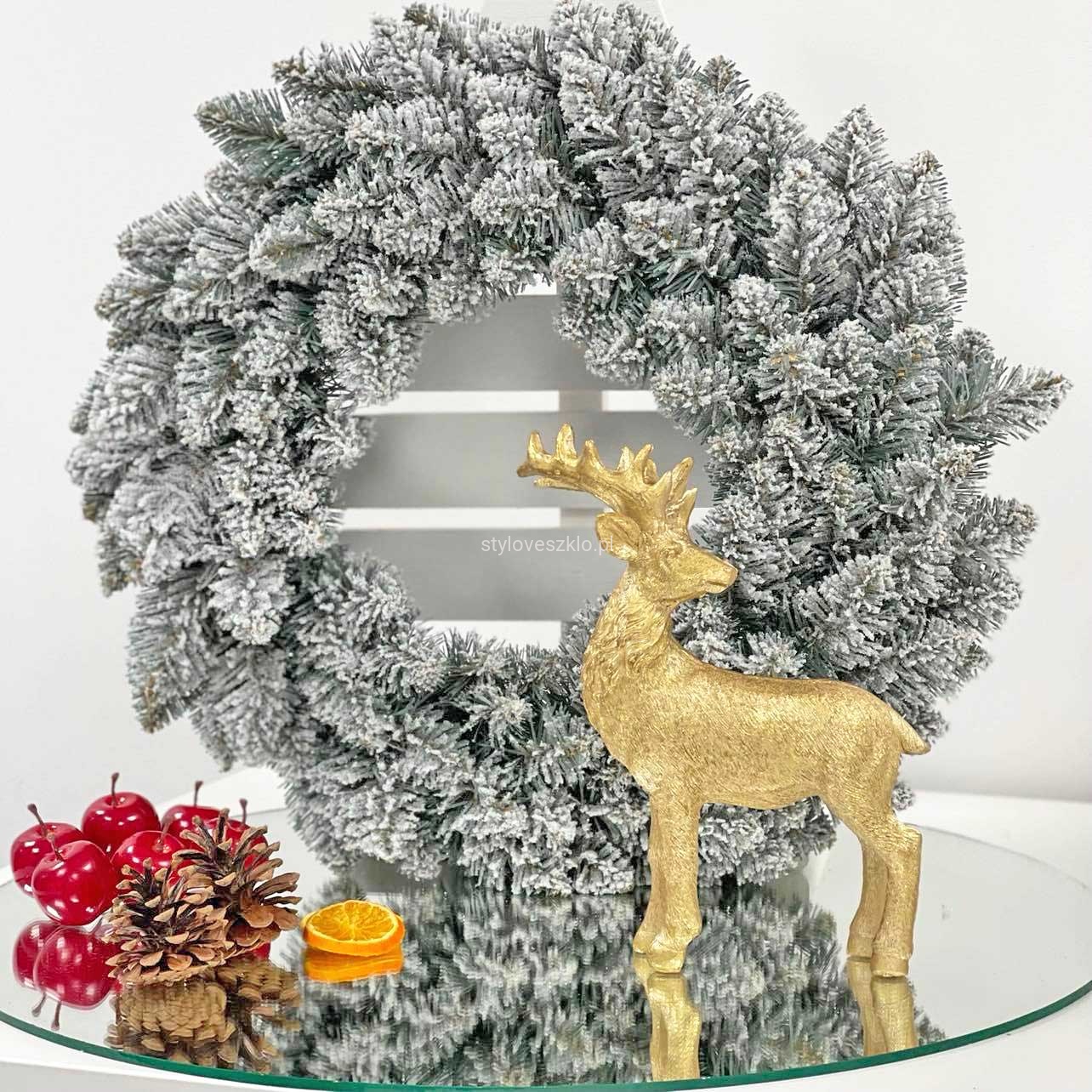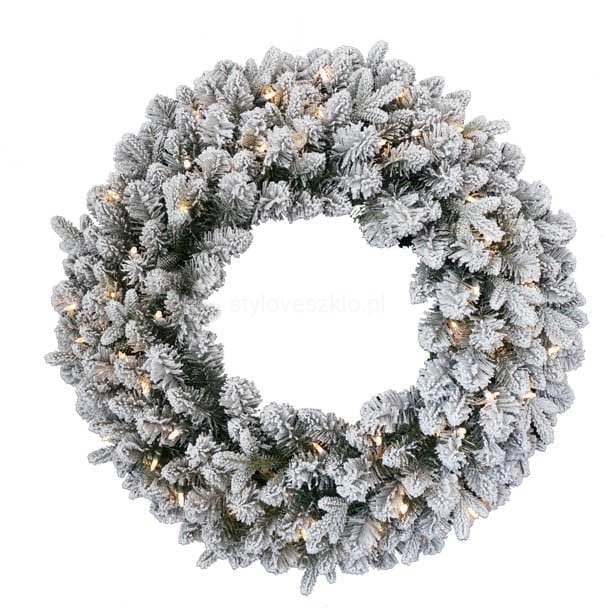 Piękny w swej prostocie wianek wykonany ze sztucznych gałązek śnieżonego świerku. Najczęściej stanowi bazę do wszelkich kompozycji florystycznych, ale może być także samodzielną ozdobą świąteczną. Do stosowania w domu, jak i na zewnątrz jako ozdoba tarasu, czy ogrodu. Łatwo przymocować do niego dodatkowe aplikacje. Udekorowany bombkami lub wstążkami znajduje swoje zastosowanie jako ozdoba świąteczna. Najpopularniejszym miejscem na powieszenie wianka są drzwi wejściowe restauracji lub domu, ale można go także umieścić na ścianie. Ten żywo zielony wianek stanowi idealną bazę do wykonania pięknej bożonarodzeniowej dekoracji w przystępnej cenie. Wianek sprzedawany jest bez ozdób.
