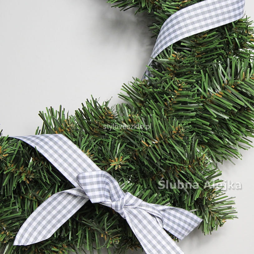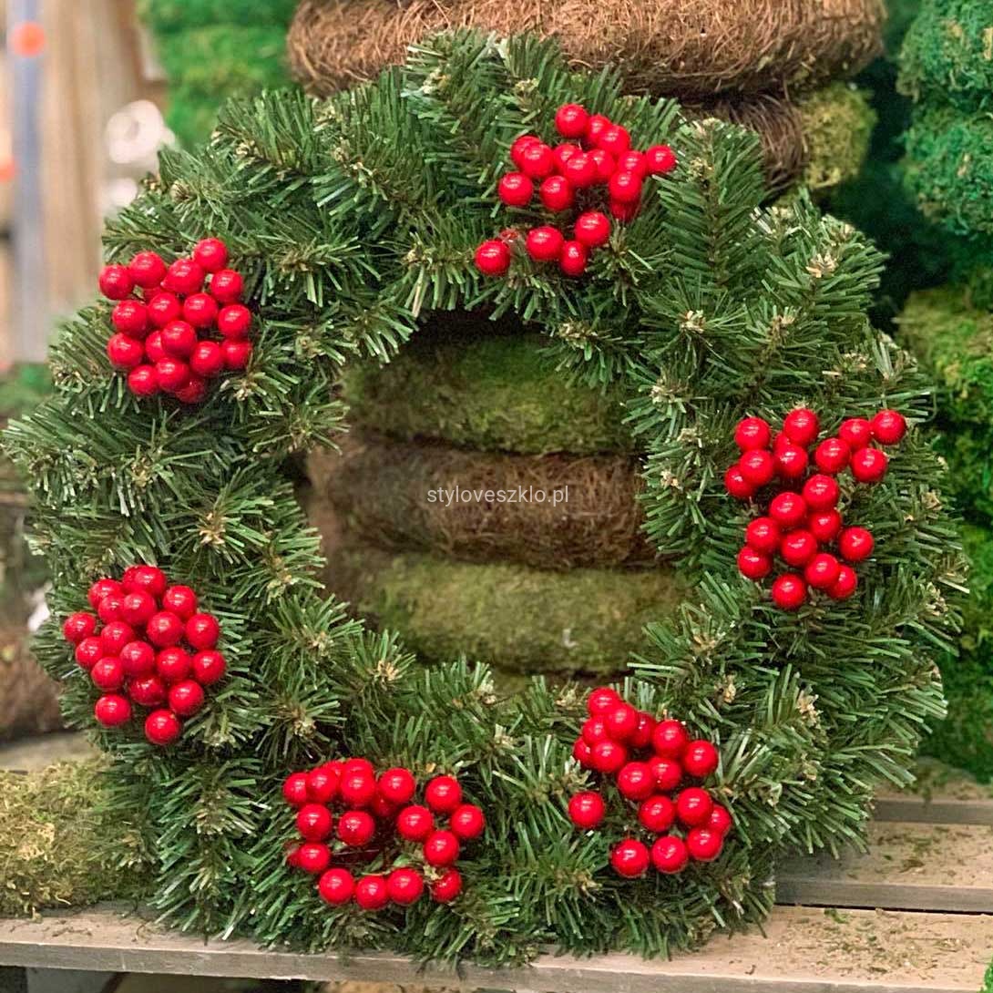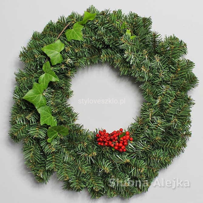 Piękny w swej prostocie wianek wykonany ze sztucznych gałązek zielonego świerku. Najczęściej stanowi bazę do wszelkich kompozycji florystycznych, ale może być także samodzielną ozdobą świąteczną. Do stosowania w domu, jak i na zewnątrz jako ozdoba tarasu, czy ogrodu. Łatwo przymocować do niego dodatkowe aplikacje. Udekorowany bombkami lub wstążkami znajduje swoje zastosowanie jako ozdoba świąteczna. Najpopularniejszym miejscem na powieszenie wianka są drzwi wejściowe restauracji lub domu, ale można go także umieścić na ścianie. Ten żywo zielony wianek stanowi idealną bazę do wykonania pięknej bożonarodzeniowej dekoracji w przystępnej cenie. Wianek sprzedawany jest bez ozdób.
