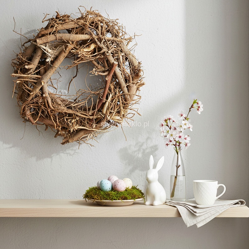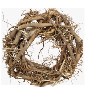 Ten wianek korzeniowy został wykonany z całkowicie z gałązek i korzeni naturalnej wierzby i stanowi bazę do wykonania oryginalnej dekoracji florystycznej. Jest to dekoracja florystyczna, a zatem do jej udekorowania wystarczą aplikacje osadzone na miękkim druciku, którym można opleść wianek, aby usztywnić ich mocowanie.