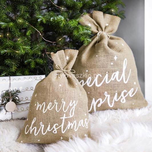 Worek Jutowy na Prezenty Merry Christmas 30x42cm