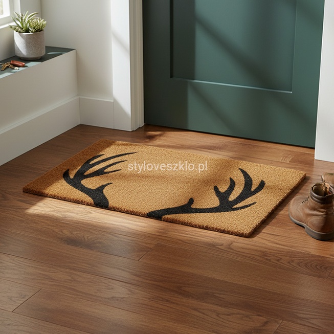 Wycieraczka rogi renifera to klimatyczny dodatek dekoracyjny w czasie świąt Bożego Narodzenia w szczególności. Wykonana z naturalnego włókna kokosowego pięknie zdobi werandy, wejścia czy recepcję w hotelach, restauracjach, czy kawiarniach. Naturalny wygląd podkreśla magiczny charakter Bożego Narodzenia.